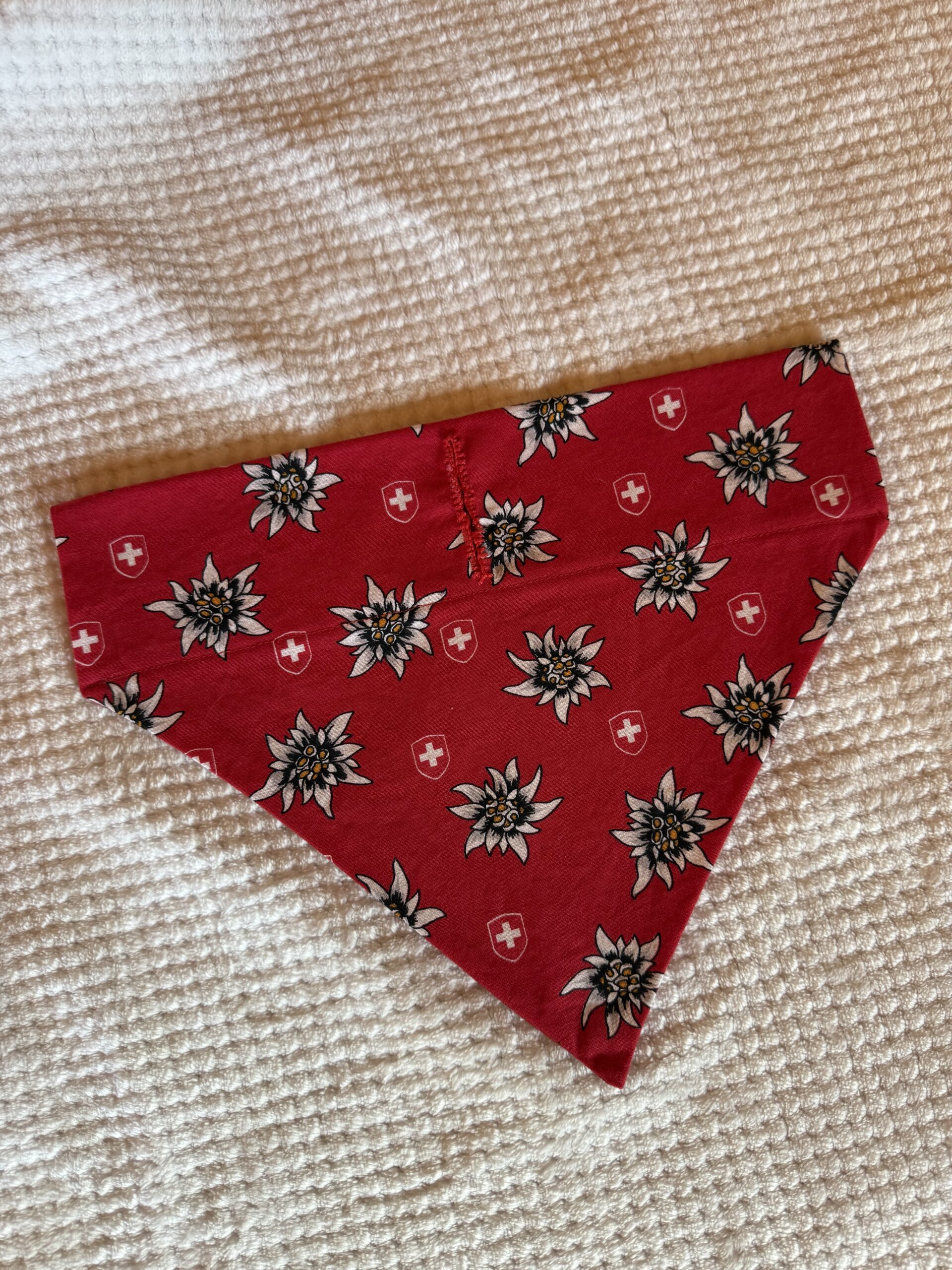 Le bandana a pour but de mettre un peu de fantaisie sur votre chien. Vous avez différents modèles que vous pouvez retrouver sur mon site à différentes tailles ou alors à la boutique AnimôBest Sàrl où vous pourrez l’essayer si vous souhaitez. La taille correspond au corps de votre chien et vous avez la dimension du tour du collier afin que ça corresponde au votre. Il y a un espace pour mettre le boucle d’accroche afin d’éviter que le bandana tourne autour du cou de votre chien. Si vous le désirez on peut ajouter le prénom ou un mot qui vous fait penser à votre chien en le brodant à la main. Cette option peut être demandée en boutique ou en commentaire dans votre commande.